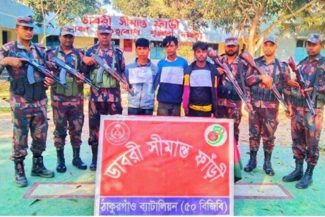 আটককৃতরা হলেন—ঠাকুরগাঁও জেলার বালিয়াডাঙ্গী উপজেলার লাহিড়ী বাজারের স্বাধীন পালের ছেলে শ্রী তুলান পাল, দুখু সিংহের ছেলে শ্রী মিঠুন সিংহ এবং পঞ্চগড় জেলার আটোয়ারী উপজেলার বামন কুমার আলেয়াখোয়া গ্রামের মেঘলাল চন্দ্র সিংহের ছেলে শ্রী মনহরি চন্দ্র সিংহ। ঘটনার পরপরই বিজিবি বিএসএফের সঙ্গে যোগাযোগ শুরু করে।