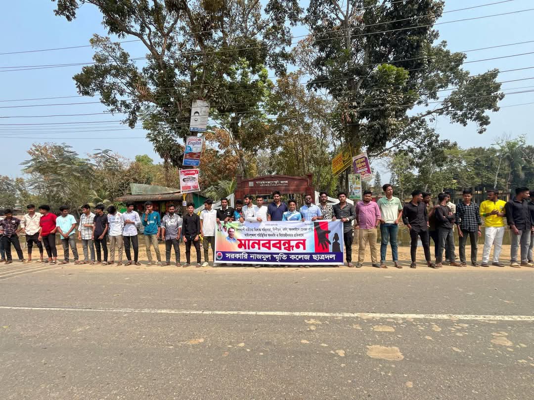 নালিতা বাড়িতে ধর্ষন ও অনলাইনে হেনস্তা বিরুদ্ধে মানববন্ধন