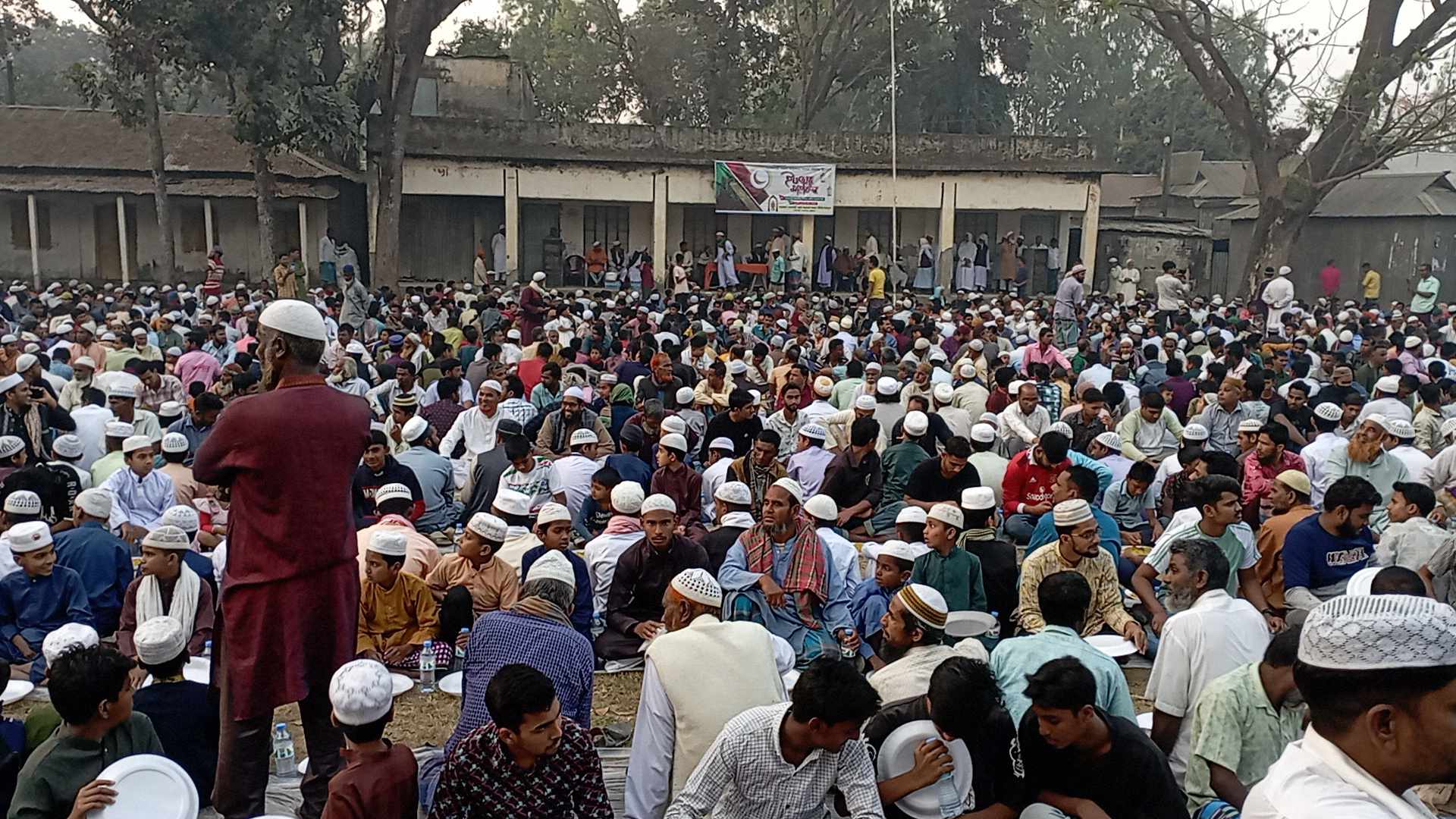 সোমবার (১০ মার্চ) সন্ধায় জামালপুর জেলার দেওয়ানগঞ্জ উপজেলার চরআমখাওয়া ইউনিয়নের সানন্দবাড়ী ইসলামিয়া সিনিয়র আলিম মাদ্রাসা মাঠে প্রায় ৩ হাজার রোজাদার ব্যক্তিদের নিয়ে সারি বদ্ধ ভাবে বসে ইফতার করা হয়।