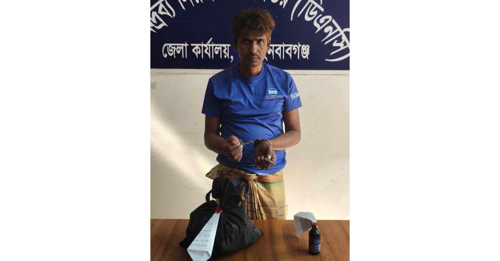 ডিএনসি’র পাঠানো প্রেস বিজ্ঞপ্তিতে জানায় জেলা কার্যালয় চাঁপাইনবাবগঞ্জের সহকারী পরিচালক মোহাম্মদ শরীফ উদ্দিনের সার্বিক দিক নির্দেশনায় জেলা কার্যালয়ের (ক-সার্কেলের) পরিদর্শক ইলিয়াস হোসেন তালুকদারের নেতৃত্বে একটি আভিযানিক টিম জেলার বারঘোরিয়া ইউনিয়নের নতুন বাজার নীল কুঠীর মাঠ গ্রামের মৃত আব্দুল বাসেদ বিসুর ছেলে শামসুদ্দীন কালু (৫০) কে নিজ বাড়ীর প্রবেশ গেইটের সামনে ঘেরাও করে তার দেহ তল্লাশী করে ব্যাগের মধ্যে ২৮ বোতল ফেনসিডিল উদ্ধার করে জব্দ করা হয়। ঘটনাস্থল হতে আসামী শামসুদ্দীন কালু কে গ্রেফতার করা হয়। আসামি জিজ্ঞাসাবাদে ফেনসিডিল ব্যবসার কথা স্বীকার করেন।