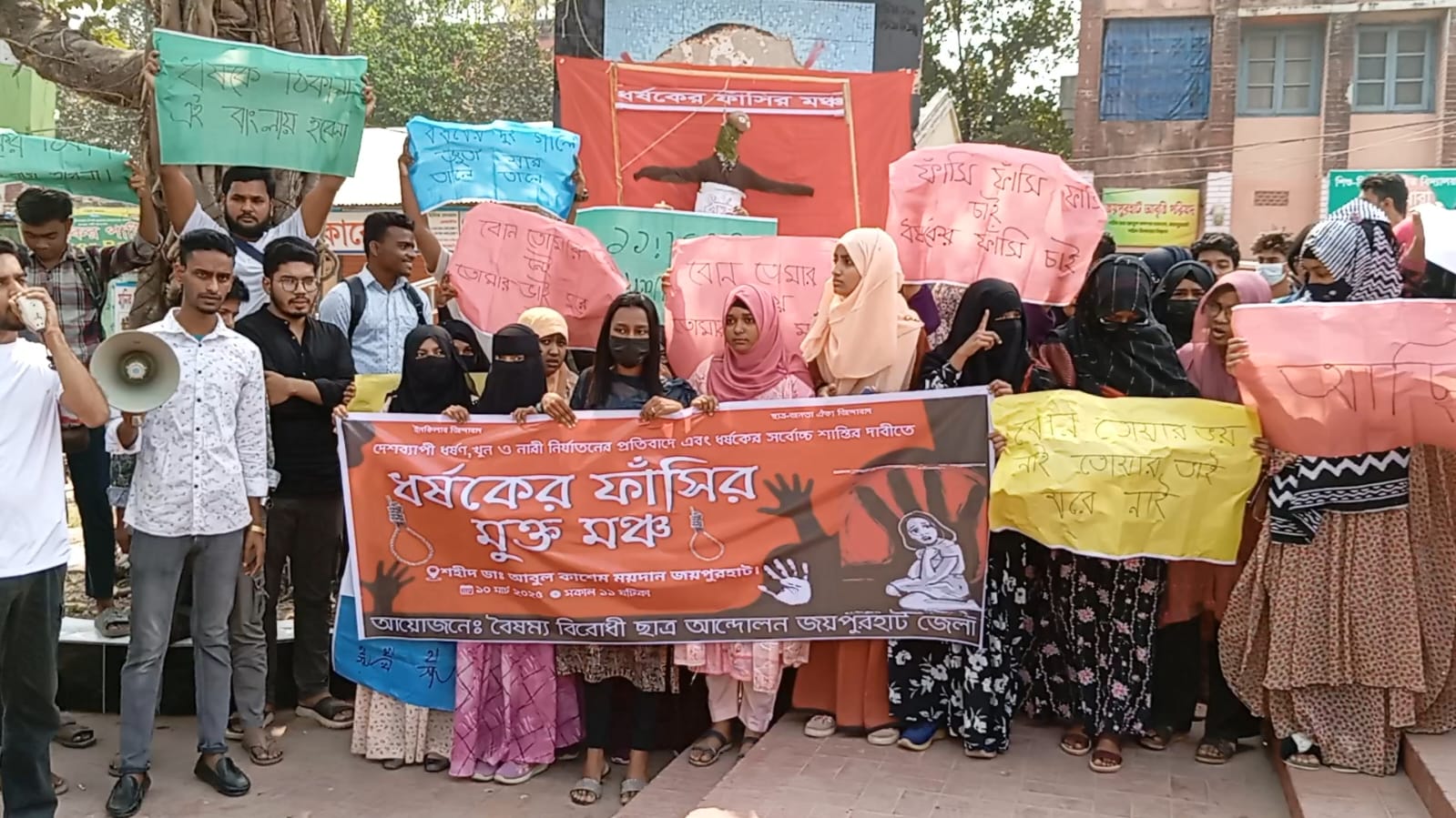 সোমবার (১০ মার্চ) বেলা সাড়ে ১১টায় জয়পুরহাটের শহীদ মিনার চত্বরে মুক্তমঞ্চ বানিয়ে এ কর্মসূচি পালন করেন তারা। এসময় দেশব্যাপী ধর্ষণ, খুন ও নারী নির্যাতনের প্রতিবাদে এবং ধর্ষকের সর্বোচ্চ শাস্তির দাবী জানানো হয়েছে।