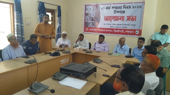 গোলাম সারোয়ার :ঝিনাইগাতী(শেরপুর)প্রতিনিধি : শেরপুর জেলার ঝিনাইগাতী উপজেলায় আজ মঙ্গলবার উপজেলার হল রুমে উপজেলা প্রশাসনের আয়োজনে গণহত্যা দিবস উপলক্ষে ইউএনও আশরাফুল আলম রাসেলের সভাপতিত্বে এক আলোচনা সভা অনুষ্ঠিত হয় ।
