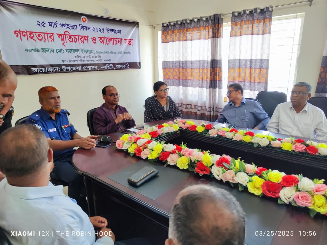 আমির হোসেন, ঝালকাঠি প্রতিনিধিঃ ঝালকাঠির নলছিটিতে ২৫ মার্চ গনহত্যা দিবস উপলক্ষে শ্রদ্ধাঞ্জলি ও আলোচনা সভা অনুষ্ঠিত হয়েছে।