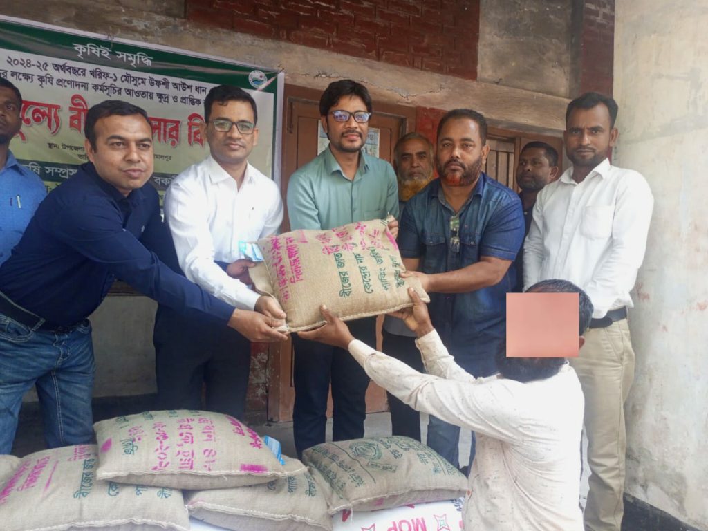 উপজেলা কৃষি কর্মকর্তা কৃষিবিদ আমিনুল ইসলামের সভাপতিত্বে, এসময় উপস্থিত ছিলেন উপজেলা কৃষি সম্প্রসারণ অফিসার আন্নিষা আফরিন প্রমুখ। উপজেলা কৃষি কর্মকর্তা কৃষিবিদ আমিনুল ইসলাম জানান, ২০২৪-২০২৫ অর্থবছরে ক্ষুদ্র ও প্রান্তিক ৬ শ ৫০ জন কৃষকের মধ্যে কৃষি প্রণোদনা কর্মসূচির আওতায় বিনামূলে উফশী আউশ ধান চাষের জন্য বীজ ও সার বিতরণ করা হয়েছে।