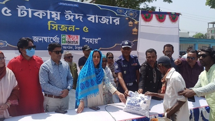 ঠাকুরগাঁওয়ে শতাধিক পরিবারের মাঝে মাত্র ৫ টাকায় ঈদের বাজার করতে পেরে খুশি ।