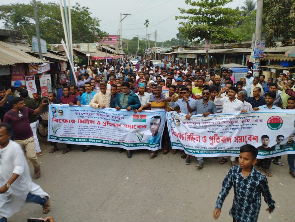 নড়াইল সদর উপজেলা বিএনপির ছাত্র বিষয়ক সম্পাদক রাশেদুল ইসলাম সান্টুর ওপর বোমা হামলার প্রতিবাদে বিক্ষোভ মিছিল ও প্রতিবাদ সমাবেশ হয়েছে।