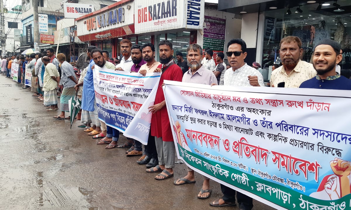 মির্জা ফখরুল ও তার পরিবারের সদস্যদের বিরুদ্ধে কাল্পনিক প্রচারণার কারণে ঠাকুরগাঁওয়ে মানববন্ধন ও প্রতিবাদ সমাবেশ
