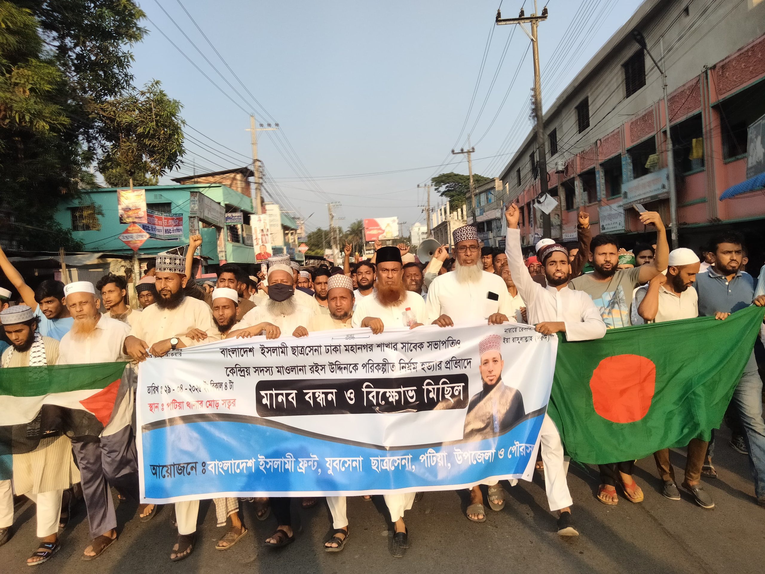 আহলে সুন্নত ওয়াল জামাত,ইসলামী ফ্রন্ট, যুবসেনা, ছাত্রসেনা পটিয়া উপজেলার আয়োজনে বিশাল মানববন্ধন ও বিক্ষোভ মিছিলটি পটিয়া বিভিন্ন গুরুত্বপূর্ণ সড়ক প্রদক্ষিণ করে পটিয়া মডেল মসজিদ সংলগ্ন মহাসড়ক ২০ মিনিট অবরুদ্ধ করে রাখে বিক্ষোভকারীরা।