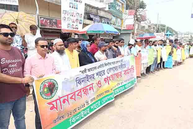ঝিনাইদহে রেললাইন স্থাপনের দাবিতে মানববন্ধন ও গণস্বাক্ষর কর্মসূচি।