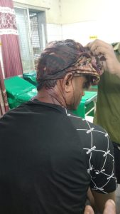 বাধা দিলে হামলাকারীরা প্রথমে শাহাজাহান চৌধুরীর মাথায় লোহার রড দিয়ে আঘাত করে গুরুতর জখম করে। মাথায় ৬টি সেলাই পড়েছে বলে জানা গেছে। পরে আব্দুল হান্নানকেও বেধড়ক মারধর করা হয়।