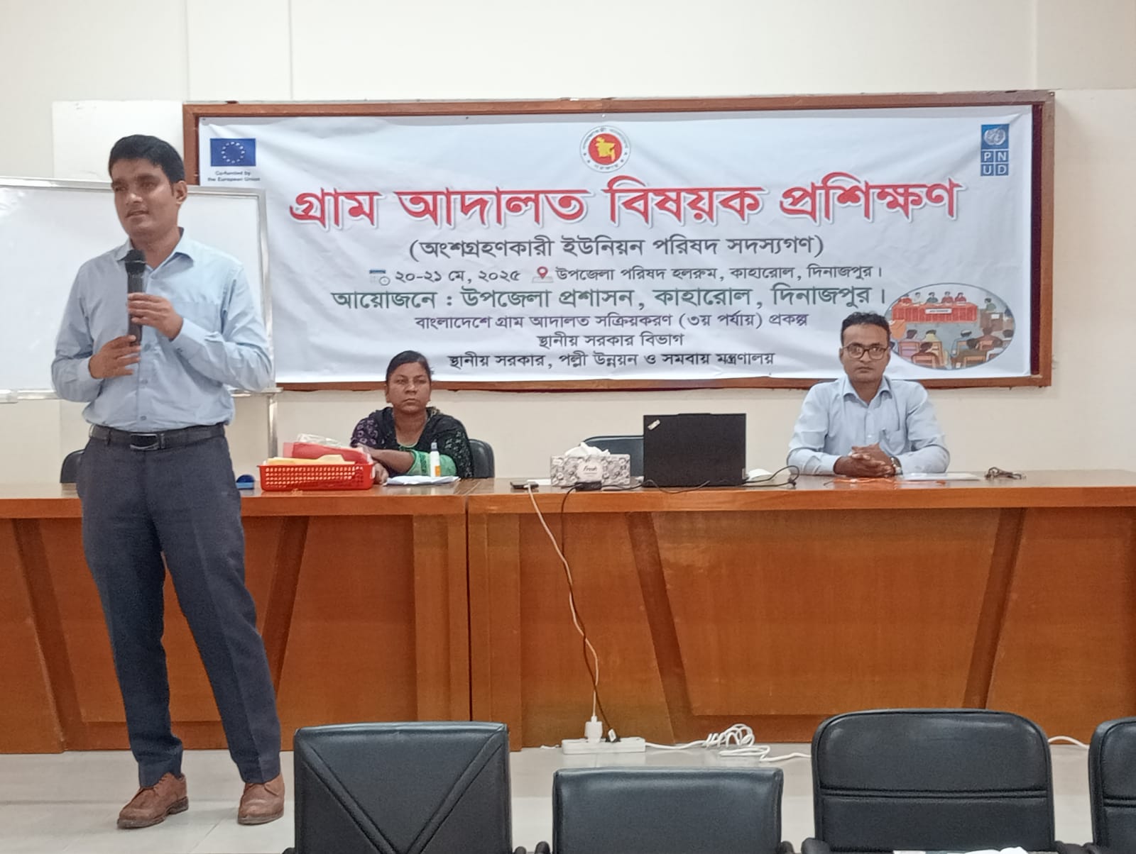 দিনাজপুরের কাহারোলে ২ দিন ব্যাপী গ্রাম আদালত বিষয়ক প্রশিক্ষণ অনুষ্ঠিত। কাহারোল উপজেলা প্রশাসনের আয়োজনে ও বাংলাদেশ গ্রাম আদালত সক্রিয়করণ (৩য় পর্যায়) প্রকল্প স্হানীয় সরকার বিভাগ, স্হানীয় সরকার পল্লী উন্নয়ন ও সমবায় মন্ত্রণালয় এর অধীনে কাহারোল উপজেলা হল রুমে গত ২০ মে ও ২১ মে এই ২ দিন ব্যাপী গ্রাম আদালত বিষয়ক প্রশিক্ষণ অনুষ্ঠিত হয়েছে।