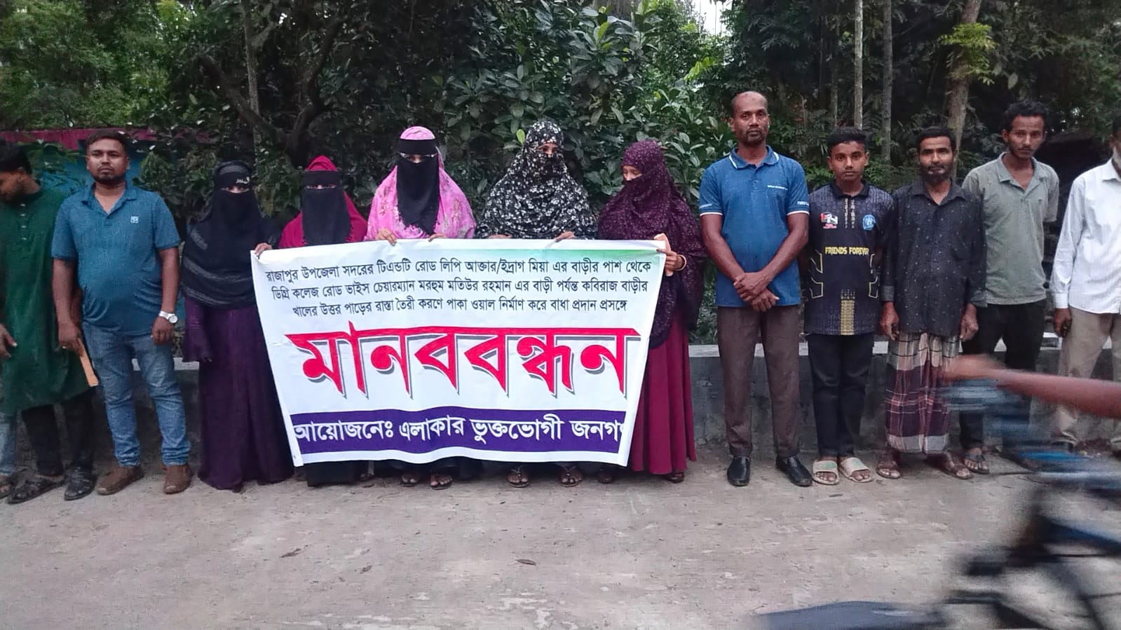 স্থানীয় সূত্রে জানা গেছে, রাস্তাটির মাটির কাজ শুরু হলেও মতিউর রহমানের বাড়ির সামনে ইটের দেওয়াল তুলে প্রায় ৫০ ফুট রাস্তার কাজ বন্ধ করে দেওয়া হয়। ফলে রাস্তাটির পূর্ণাঙ্গ মাটির কাজ করা সম্ভব হচ্ছে না। এই পরিস্থিতিতে রাস্তাটি উন্মুক্ত করে জনসাধারণের স্বাভাবিক চলাচল নিশ্চিতের দাবিতে এলাকাবাসী মানববন্ধনের আয়োজন করে।