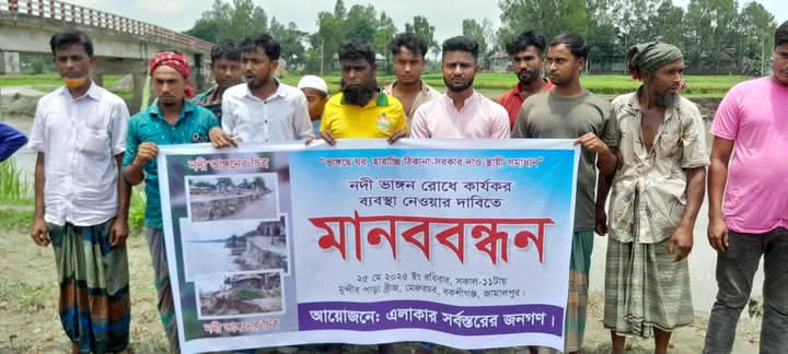 বকশীগঞ্জ নদী ভাঙ্গন প্রতিরোধে স্থায়ী পদক্ষেপ গ্রহণের দাবীতে মানববন্ধন