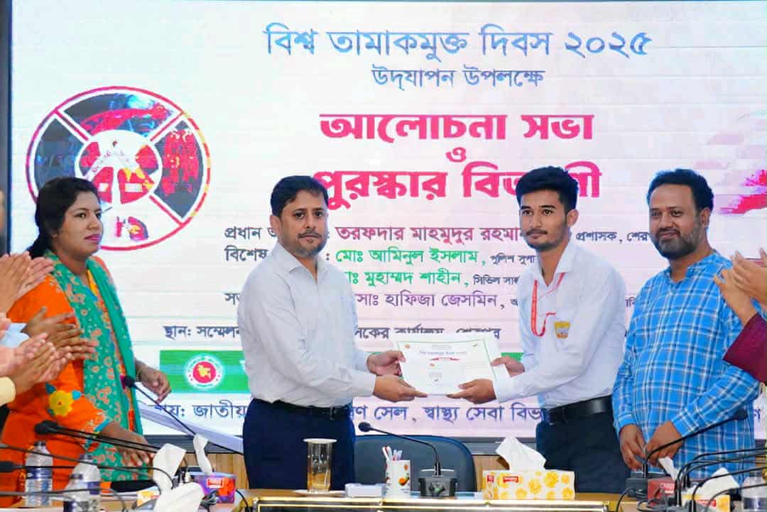 পরে এ উপলক্ষে জেলা প্রশাসন কর্তৃক আয়োজিত রচনা প্রতিযোগিতার বিজয়ী ৩ শিক্ষার্থীর মাঝে পুরস্কার ও সনদপত্র বিতরন করা হয়।উক্ত র্যালী,আলোচনা সভা ও পুরস্কার বিতরণী অনুষ্ঠানে প্রশাসনের বিভিন্ন দপ্তরের কর্মকর্তা, রাজনৈতিক নেতৃবৃন্দ,সাংবাদিক, ছাত্র প্রতিনিধি,সুশীল সমাজের ব্যক্তিবর্গসহ বিভিন্ন শিক্ষা প্রতিষ্ঠানের শিক্ষক-শিক্ষার্থীরা উপস্থিত ছিলেন।অনুষ্ঠানে বক্তারা ধূমপান ও তামাকের বিভিন্ন ক্ষতিকারক দিক উল্লেখ করে বক্তব্য রাখা সহ যুব সমাজকে তা পরিহারের জন্য গুরুত্বারোপ করেন।