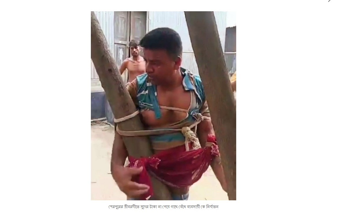 শেরপুরের শ্রীবরদীতে সুদের টাকা না পেয়ে গাছে বেঁধে ব্যবসায়ী কে নির্যাতন