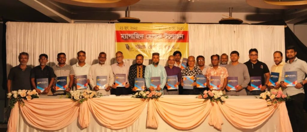এনামুল হক রাশেদী, চট্টগ্রামঃ চট্টগ্রাম জেলা প্রেস ক্লাবের বার্ষিক ম্যাগাজিনের মোড়ক উন্মোচন অনুষ্ঠান আজ ২১ জুন, শনিবার নগরীর আগ্রাবাদ ক্লাবের অফিসে অনুষ্ঠিত হয়েছে। বেলা ৩টায় শুরু হওয়া এ আয়োজনে চট্টগ্রামের প্রবীণ ও নবীন সাংবাদিকেরা অংশ নেন। অনুষ্ঠানে স্বাগত বক্তব্য রাখেন ক্লাবের সিনিয়র সহ-সভাপতি কাজী জিয়া উদ্দিন সোহেল। চট্টগ্রাম প্রেস ক্লাবের সভাপতি সৈয়দ আবু মুছার সভাপতিত্বে এবং সাধারণ সম্পাদক কেফায়েত উল্লাহ কায়সারের সঞ্চালনায় অনুষ্ঠানটি পরিচালিত হয়।