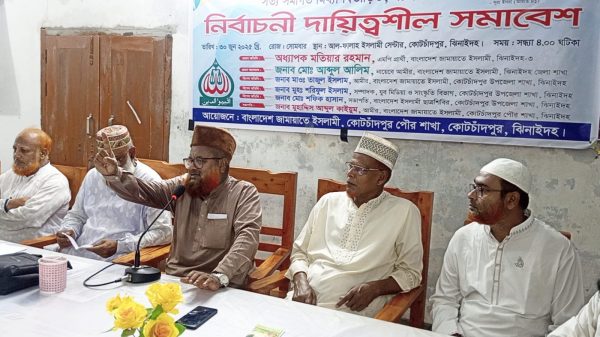 এ.এস আব্দুস সামাদঃ “সত্য সমাগত মিথ্যা বিতাড়িত, সত্যের জয় অবশ্যম্ভাবী” পবিত্র কোরআনের এ বাণীকে সামনে রেখে ঝিনাইদহের কোটচাঁদপুর পৌর জামায়াতে ইসলামীর উদ্যোগে আয়োজিত হয়েছে নির্বাচনী দায়িত্বশীল সমাবেশ অনুষ্ঠিত হয়েছে।