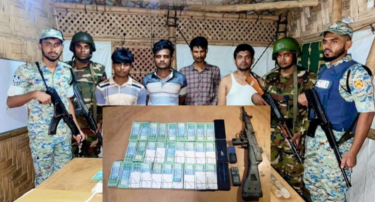 রোহিঙ্গা ক্যাম্পে বিদেশি এসএমজি ও নগদ ১৪ লাখ টাকাসহ আটক ৪