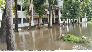এ ছাড়া এই ভবনটিতে স্কুলের শিক্ষক মিলনায়তন ও অফিস কক্ষ রয়েছে। দক্ষিণ পাশের ভবনটিতে শিশু শ্রেণি, প্রথম ও দ্বিতীয় শ্রেণির ক্লাস হয়। এ দু’টি ভবনের দূরত্ব এক’শ মিটারের বেশি। সামান্য বৃষ্টিতে মাঠের মধ্যে জলাবদ্ধতার সৃষ্টি হয়। কয়েক দিনের টানা বৃষ্টিতে স্কুলের মাঠে এখন হাটু পনি। শুধু তাই নয় দু’টি ভবনের বারান্দায় পানি উঠে গেছে। ফলে শিক্ষার্থীদের অনেক কষ্ট স্বীকার করে স্কুলে যেতে হচ্ছে।