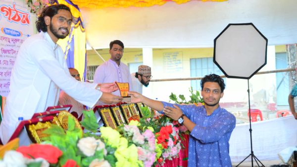হলদিয়া তরুণ ব্লাড ডোনার্স এর পক্ষ হয়ে সম্মাননা স্মারক গ্রহণ করেন সংগঠন এর সদস্য মোহাম্মদ ওমর ফারুক।