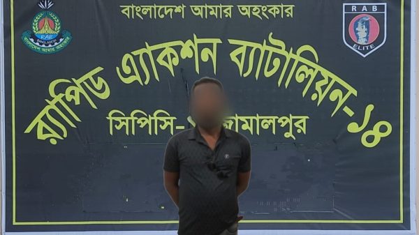 র্যাপিড অ্যাকশন ব্যাটালিয়ন (র্যাব) আত্মপ্রকাশের শুরু থেকেই দেশের বিভিন্ন এলাকায় হত্যা,সন্ত্রাস, চাঁদাবাজি,অপহরণ,ছিনতাই, অবৈধ অস্ত্র ও মাদক উদ্ধারসহ নানা অপরাধ দমনে গুরুত্বপূর্ণ ভূমিকা পালন করে আসছে। তারই ধারাবাহিকতায় র্যাব-১৪ এর জামালপুর সিপিসি-১ কোম্পানি শেরপুরে এক অভিযানে চাঁদাবাজি মামলার এক এজাহারনামীয় আসামিকে গ্রেফতার করেছে।