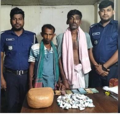 গ্রেপ্তারকৃতরা হলো- আউকপাড়া আদর্শ গ্রাম এলাকার তোতা মিয়ার ছেলে চিহ্নিত মাদক ব্যবসায়ী হোসেন ভান্ডারী (৫০) ও শেখ লিটন। পুলিশ জানায়, রাতে আশুলিয়ার আউকপাড়া এলাকার ৩০ ফিট রাস্তা সংলগ্ন যৌথ বাহিনীর চেকপোস্ট চলাকালীন সময়ে গোপন সংবাদের ভিত্তিতে পার্শ্ববর্তী হোসেন ভান্ডারীর বাড়ীর সামনে থেকে মাদকদ্রব্য গাঁজা ক্রয়-বিক্রয়ের সময় দুই মাদক কারবারিকে গ্রেপ্তার করা হয়। এ সময় তাদের হেফাজত থেকে ২ কেজি ৩০০ গ্রাম গাঁজা ও মাদক বিক্রির নগদ ৩০ হাজার ৭৮০ টাকা উদ্ধার করা হয়।