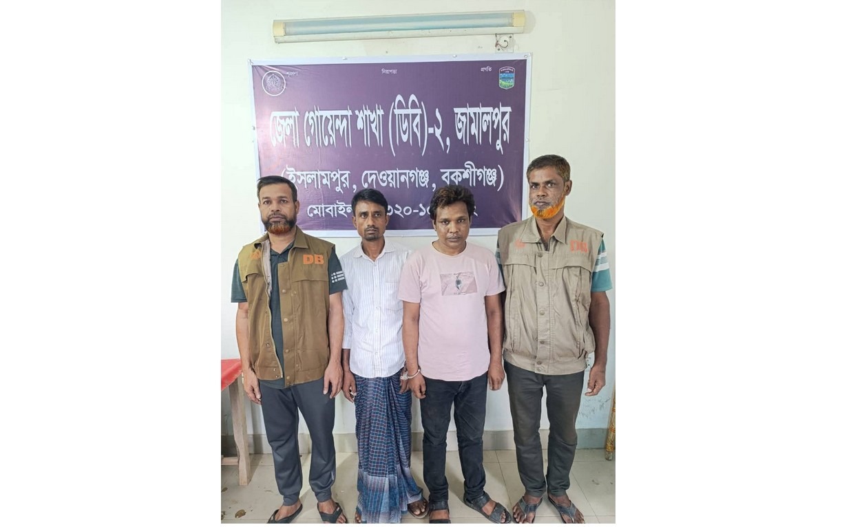 আটককৃতরা হলেন, বকশীগঞ্জ পৌর এলাকার বীর মুক্তিযোদ্ধা নওশেদ আলীর ছেলে ও উপজেলা স্বাস্থ্য কমপ্লেক্সের ওয়ার্ড বয় সোহাগ মিয়া (৪০), এবং মেরুরচর ইউনিয়নের রবিয়ারার চর গ্রামের আসাদের ছেলে মুরাদ (৩৫)।
