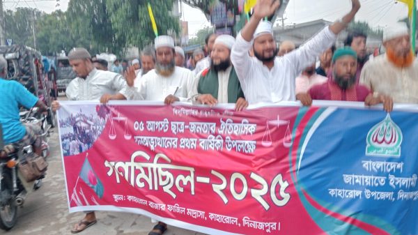 কাহারোল (দিনাজপুর) প্রতিনিধি।। দিনাজপুরের কাহারোলে ৫ অগাস্ট ছাত্র -জনতার গনঅভ্যুত্থানের ঐতিহাসিক বিজয়ের ১ম বর্ষ পূর্তি উপলক্ষ্যে,বাংলাদেশ জামায়াতে ইসলামী কাহারোল উপজেলা শাখার আয়োজনে এক বণাঢ্য র্যালী অনুষ্ঠিত।
