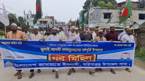 হরিনাকুন্ডুতে বাংলাদেশ জামায়াতে ইসলামী “জুলাই অভ্যুত্থান দিবস” উপলক্ষে গণ মিছিল