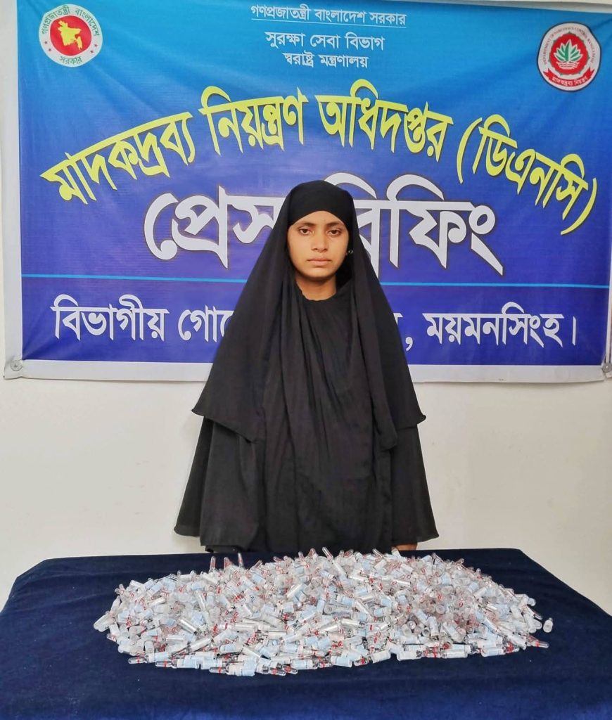 শুক্রবার ৮ জুলাই বিকাল ৪ ঘটিকায় ময়মনসিংহ মাদকদ্রব্য নিয়ন্ত্রণ অধিদপ্তর গোয়েন্দা কার্যালয়ের সহকারী পরিচালক কাওসারুল হাসান রনির সার্বিক তত্ত্বাবধানে কোতোয়ালী মডেল থানাধীন বলাশপুর এলাকায় যাত্রীবাহী বাস তল্লাশী করে মোছাঃ শান্তা আক্তার(২১) নামে এক মাদক সম্রাজ্ঞীকে ৯৯০ এ্যাম্পুল কুপিজেসিক ইনজেকশনসহ গ্রেফতার করা হয়।