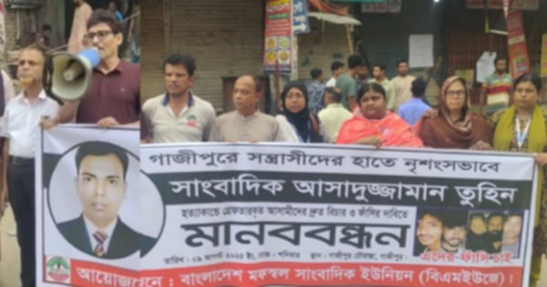 বিএমইউজে’র মানববন্ধনের সাভার সভাপতি সোহেল আহমেদ বলেন সারাদেশে ধারাবাহিকভাবে সাংবাদিক হত্যা, নির্যাতন, মিথ্যা মামলা ও হামলার ঘটনা ঘটছে। অপরাধীদের বিচার না হওয়ায় এসব ঘটনা বেড়েই চলেছে। তিনি বলেন যেহেতু গাজীপুর মেট্রোপলিটন পুলিশ কমিশনার বলেছেন ১৫ দিনের মধ্যে অভিযোগপত্র দিতে চেয়েছেন তাই আগামী ৩ মাসের মধ্যে তুহিন হত্যার বিচার সম্পন্ন ও দোষীদের কঠোর শাস্তি দাবি করেন। অন্যথায় সারা দেশে একযোগে কঠোর কর্মসূচি ঘোষণার হুঁশিয়ারি দেন।