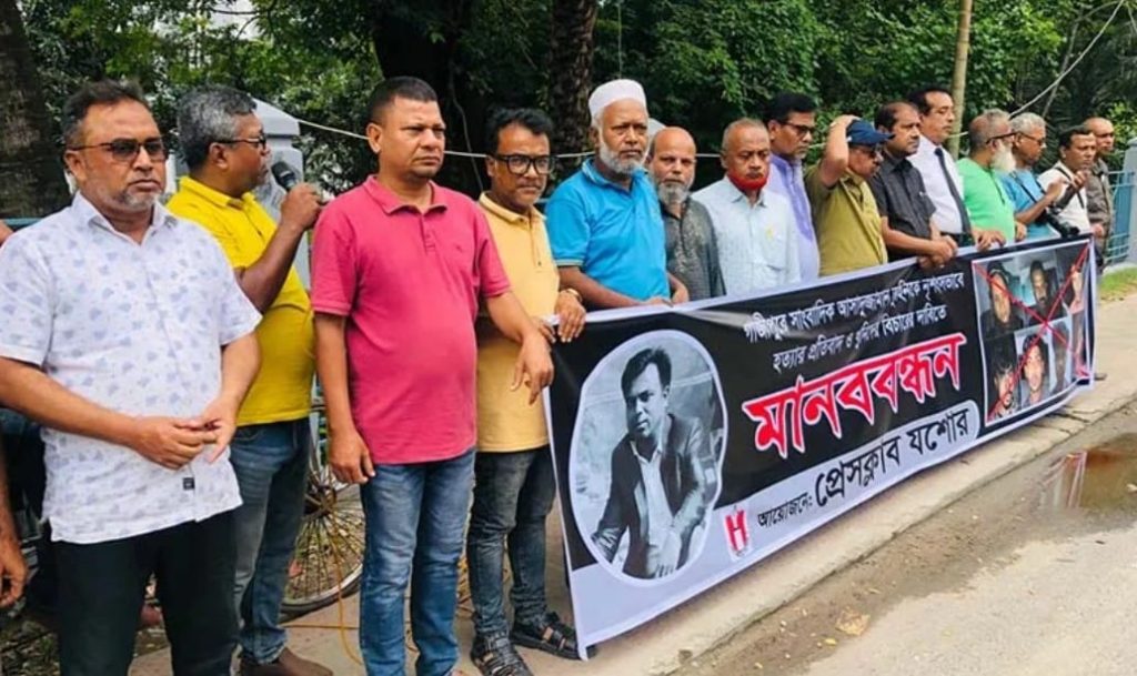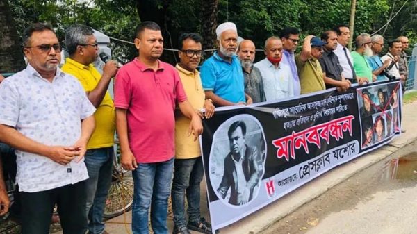 গাজীপুরে সাংবাদিক তুহিন হত্যা যশোরে মানববন্ধন