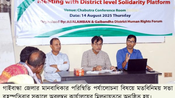গাইবান্ধায় মানবাধিকার পরিস্থিতি পর্যালোচনায় মতবিনিময় সভা অনুষ্ঠিত