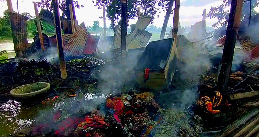 স্থানীয় সূত্রে জানা গেছে, ফকির বাড়ীর আসাদ আলীর ঘর থেকে প্রথমে অগ্নিকান্ডের সূত্রপাত ঘটে। পরে সেই আগুন মুহূর্তের মধ্যেই পাশে থাকা তিনটি বসতঘরে ছড়িয়ে পড়ে এতে এবাদ আলী,জাহাঙ্গীর আলম, চিকন আলীর বসত ঘরে আগুন লেগে নগদ টাকা,ধান,আসবাবপত্র সহ অন্তত দশ লক্ষ টাকার ক্ষয়ক্ষতি হয়েছে বলে ধারনা।