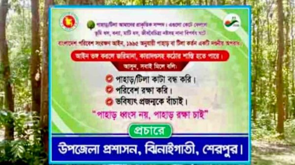 মোহাম্মদ দুদু মল্লিক,শেরপুর: শেরপুর জেলার সীমান্তবর্তী ঝিনাইগাতী উপজেলায় পাহাড় ও টিলা রক্ষায় ব্যাপক জনসচেতনতা তৈরির উদ্যোগ নিয়েছে উপজেলা প্রশাসন।