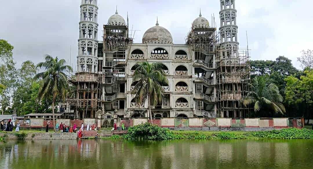 প্রথমে একতলা হলেও বর্তমানে তা রূপ নিয়েছে পাঁচতলায়। একই সঙ্গে প্রায় ৩-৪ হাজার মুসল্লি এখানে নামাজ আদায় করতে পারেন,যা নিঃসন্দেহে এক বিরল দৃষ্টান্ত। মসজিদের পাশে রয়েছে বিস্তৃত একটি বড়দিঘী যা এর সৌন্দর্যকে বহুগুণে বাড়িয়ে দিয়েছে। স্থানীয়দের বিশ্বাস,এক ভয়াবহ ভূমিকম্পে মসজিদটি একসময় মাটির নিচে চাপা পড়ে যায়।