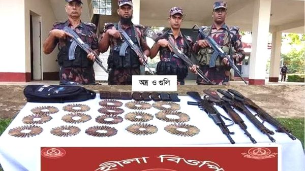 তিনি আরও জানিয়েছেন, হ্নীলা চৌধুরী পাড়া খরের দ্বীপ এলাকায় নদীপথে বিশেষ অভিযান পরিচালনার সময় সন্দেহজনক কিছু লোকের উপস্থিত টের পায় বিজিবি। তখন বিজিবি সদস্যদের দেখে তারা দু-তিনটি গুলি করে মিয়ানমারের অভ্যন্তরে নৌকাযোগে পালিয়ে যায়। পরে ওই এলাকা গভীর অনুসন্ধানের মাধ্যমে নির্দিষ্ট স্থানে লুকানো অবস্থায় ওই অস্ত্রগুলো উদ্ধার করা হয়।
