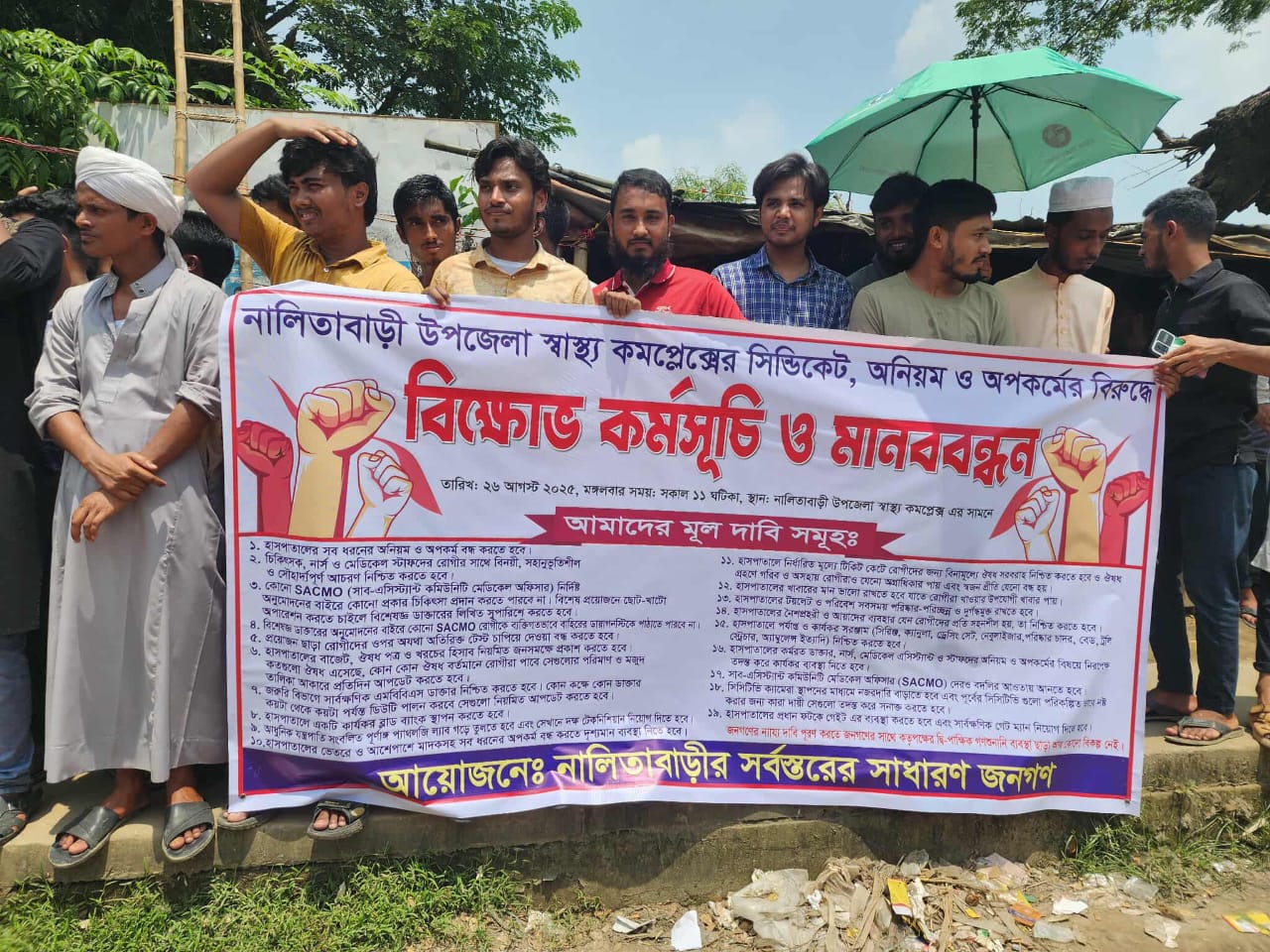মানববন্ধনে উপজেলার বিভিন্ন সামাজিক সংগঠনের সদস্য, স্বেচ্ছাসেবী, গণমাধ্যমকর্মী ও ভুক্তভোগী রোগীরা অংশ নেন। এতে বক্তারা স্বাস্থ্য সেবায় চলমান সিন্ডিকেট, অনিয়ম ও দুর্নীতির বিরুদ্ধে ক্ষোভ প্রকাশ করে অবিলম্বে কার্যকর পদক্ষেপ নেওয়ার দাবি জানান।