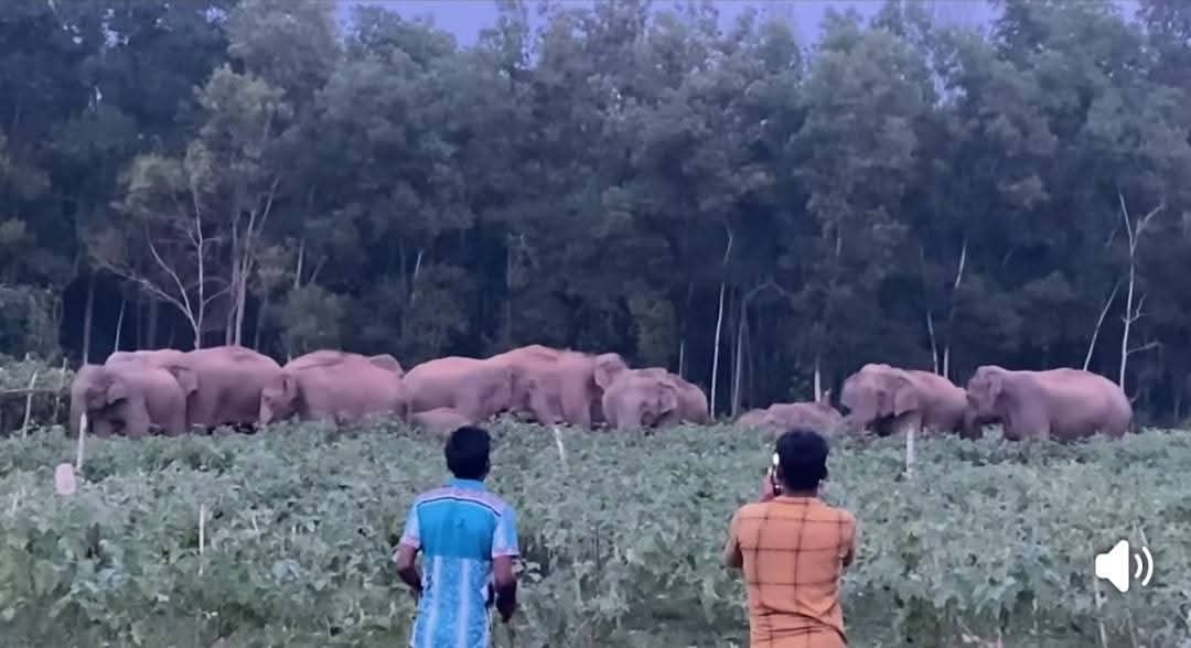বৃহস্পতিবার বিকেলে সরেজমিনে দেখা গেছে,বন্য হাতির দলটি সন্ধ্যাকুড়া এলাকার গোলাপ ফুল বাগান, আকাশমনি কাঠের বাগান ও বিভিন্ন সবজি খেতে অবস্থান করতে দেখা যায়। পাশাপাশি এলাকাবাসী ও উৎসুক মানুষ ভিড় করেছেন। হাতি সরাতে মানুষ হইহুল্লোড় করছেন। এসময় বন্য হাতির দল ধান ও বিভিন্ন সবজির খেত হাতির পা দিয়ে মাড়িয়ে তছনছ করে দিচ্ছে। সন্ধ্যাকুড়া গ্রামের কৃষক দেলোয়ার বলেন, বুধবার দিবাগত রাতে বন্য হাতির দল আমার ২৫ শতাংশ ধানের জমি পা দিয়ে পিষে নষ্ট শেষ করে দিয়েছে।