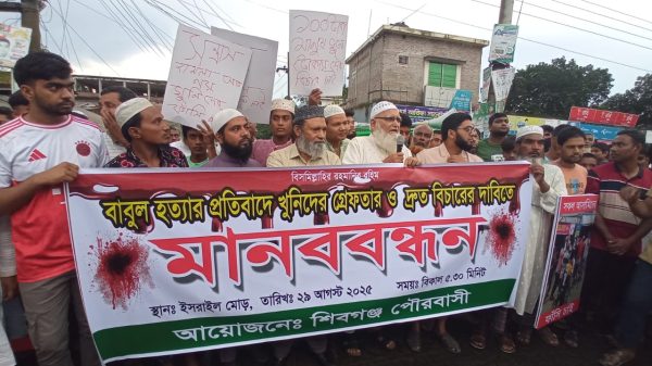মানববন্ধনে বক্তারা বলেন, নৃশংসভাবে বাবুল হত্যার ঘটনায় পুলিশ এখনও নিরব ভূমিকা পালন করছে। হত্যাকারীরা প্রকাশ্যে ঘুরে বেড়ালেও তাদেরকে গ্রেপ্তার করছেনা। আগামী ২৪ ঘণ্টার মধ্যে পুলিশ প্রশাসন যদি আসামিদের গ্রেপ্তার না করে, তাহলে আমরা কঠোর কর্মসূচি ঘোষণা করবো এবং শিবগঞ্জ থানার সমস্ত পুলিশকে প্রত্যাহারের জন্য উর্দ্ধতন কর্তৃপক্ষের দ্বারস্ত হবো।