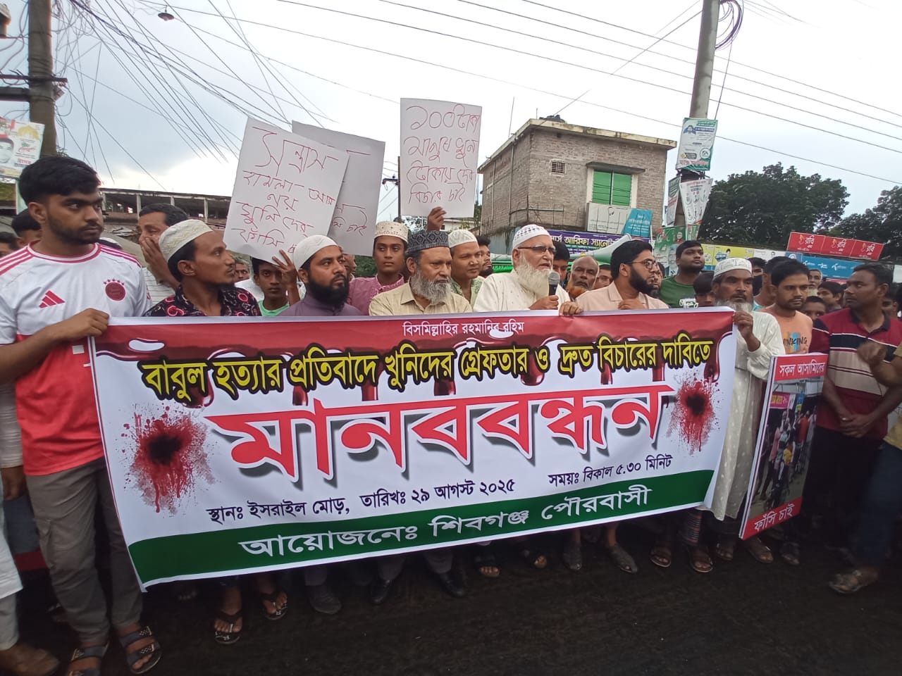 ঘণ্টাব্যাপি চলা মানববন্ধনে বক্তব্য দেন, বাংলাদেশ মানবাধিকার বাস্তবায়ন সংস্থা চাঁপাইনবাবগঞ্জ শাখার সাধারণ সম্পাদক অ্যাডভোকেট মোয়াজ্জেম হোসেন মেহেদী, শিবগঞ্জ শিল্প ও বণিক সমিতির সভাপতি ইউসুফ আলী, শিবগঞ্জ পৌর জামায়াতের সহকারী আমির আবদুস সামাদ শামীম রেজা, নিহতের ছোট ভাই ও বাবুল হত্যার মামলার বাদি নজরুল ইসলাম, নিহতের ছেলে শওকত হোসেন সাঈদ, স্থানীয় বাসিন্দা রফিকুল ইসলাম ইতি ও শাহীন আলীসহ অন্যরা।
