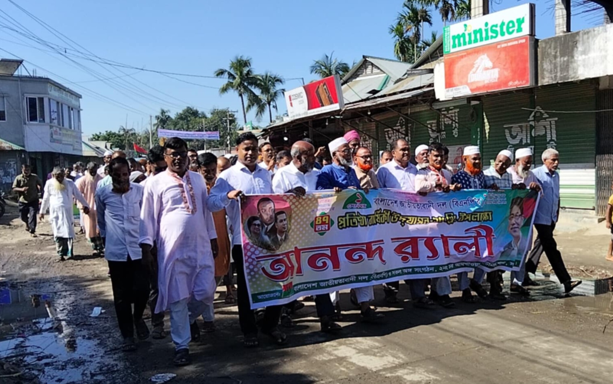 দলীয় কার্যালয় থেকে একটি র্যালী বের হয়ে চরআমখাওয়া ইউনিয়নের প্রধান প্রধান সড়ক প্রদক্ষিণ শেষে লম্বা পাড়া হাফেজিয়া মাদ্রাসা মাঠে এসে শেষ হয়।