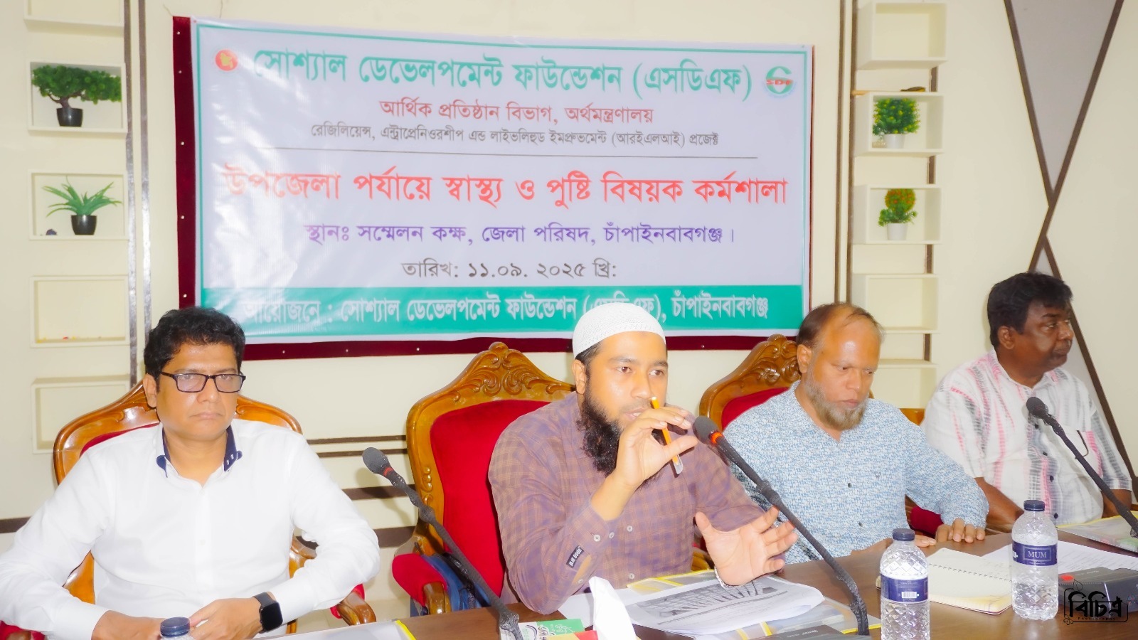 মোঃ মাহাবুবুর রশীদ, জেলা ব্যবস্থাপক, এসডিএফ, চাঁপাইনবাবগঞ্জ এর সভাপতিত্বে কর্মশালাটি অনুষ্ঠিত হয়।