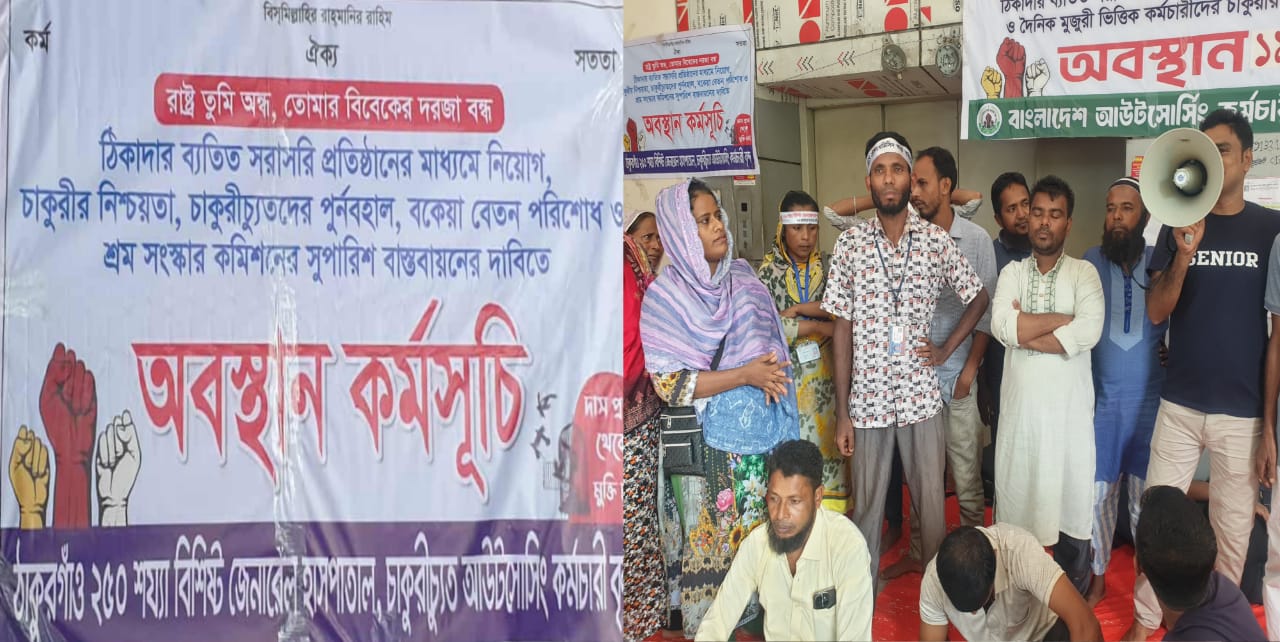 ঠাকুরগাঁও জেনারেল হাসপাতাল আউটসোর্সিং চাকুরীচ্যুতদের টানা ১৯ দিন শ্রম ভবন অবস্থান কর্মসূচি।