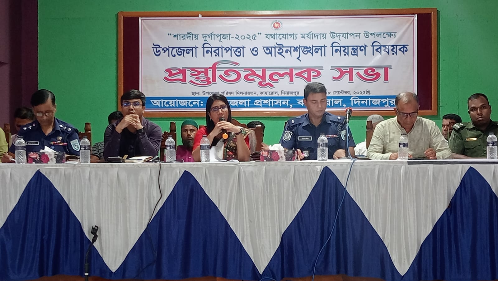 কাহারোলে শারদীয় দূর্গা পূজা উপলক্ষে প্রস্তুতিমূলক সভা অনুষ্ঠিত।।