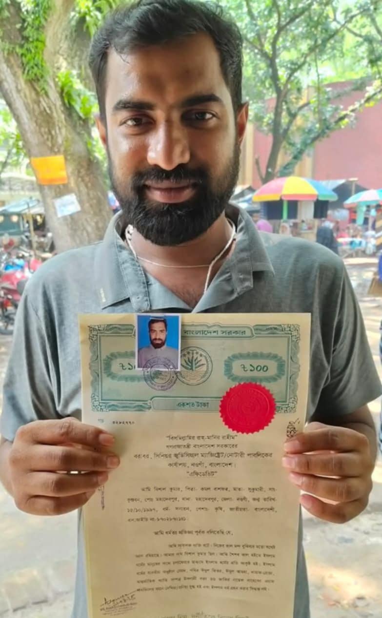নওগাঁ জুডিসিয়াল ম্যাজিস্ট্রেট আদালতের হলফনামা থেকে জানা যায়, বিশাল কুমার ওরফে মোহাম্মদ বরকতউল্লাহ কোর্ট ইমামের কাছে পবিত্র কালেমা ‘লা ইলাহা ইল্লাললাহু মুহাম্মদ রাসুলুল্লাহ্ (সা.)' মৌখিকভাবে পাঠ করেন এবং আন্তরিকভাবে বিশ্বাস করে ইসলাম ধর্ম গ্রহণ করেন এবং তিনি মনে প্রাণে ইসলাম ধর্ম পালন করেছেন।