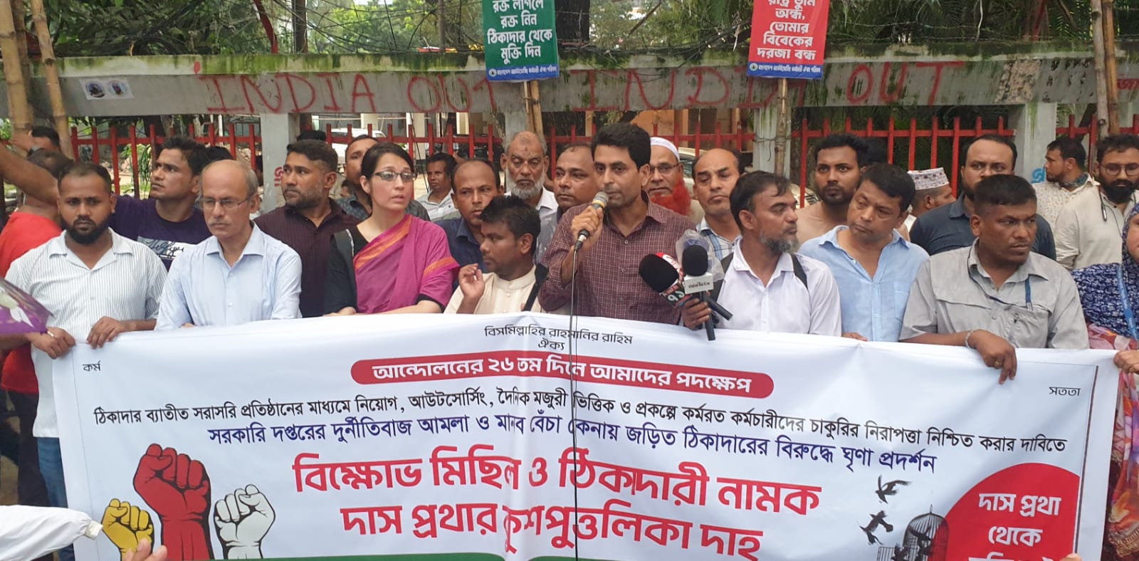 ঠিকাদার প্রথা বাতিলের দাবিতে আউটসোর্সিং কর্মচারীদের আন্দোলন অব্যাহত