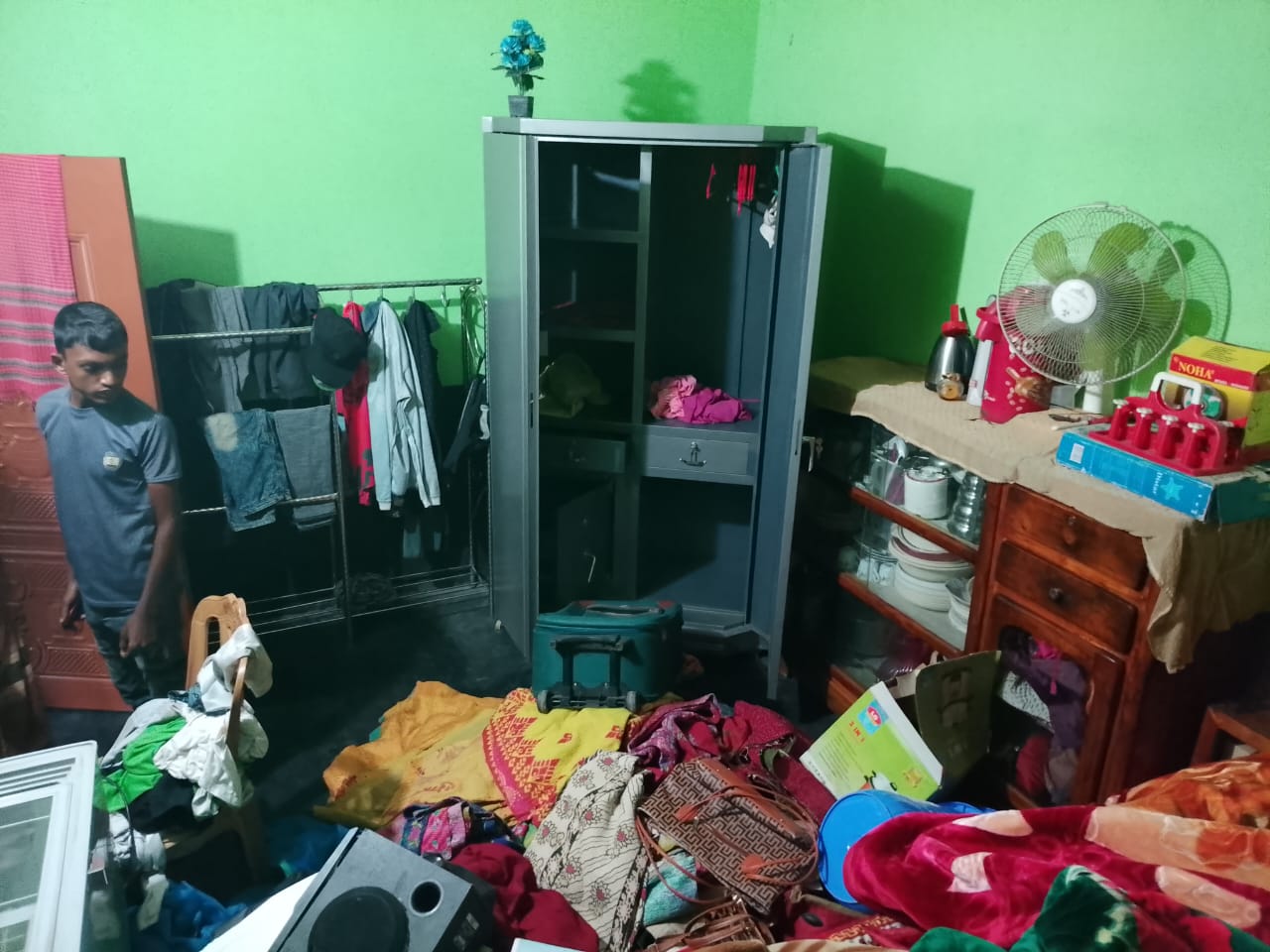 পরে দেখেন তাদের সমস্ত ঘরের আসবাব পত্র এলোমেলা ও জানালার গ্রিল কাটা। চোরেরা চেতনানাশক জাতীয় কিছু স্প্রে করে বাড়ীর লোকজনকে অচেতন করে এই চুরির ঘটনা ঘটিয়েছে ধারণা করছেন স্থানীয়রা।