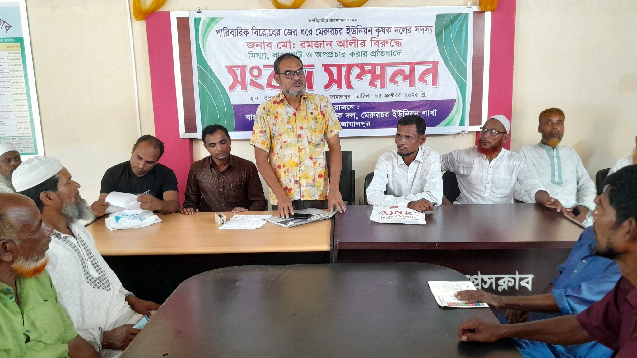 জামালপুরের বকশীগঞ্জে পারিবারিক বিরোধের জের ধরে ইউনিয়ন কৃষক দলের সদস্য রমজান আলীর বিরুদ্ধে ষড়যন্ত্রমূলক অপপ্রচারের প্রতিবাদে সংবাদ সম্মেলন অনুষ্ঠিত হয়েছে।