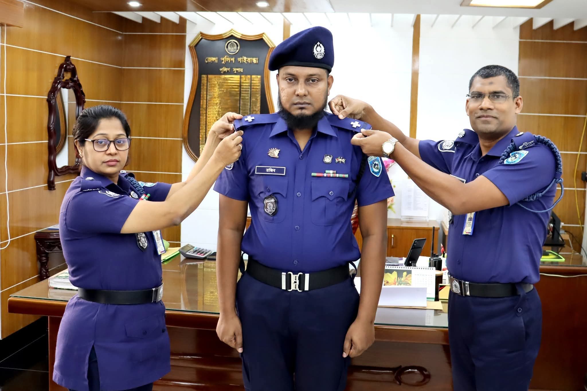 গাইবান্ধা জেলায় পদোন্নতিপ্রাপ্ত পুলিশ সদস্যের র‍্যাংক ব্যাজ পরিধান”